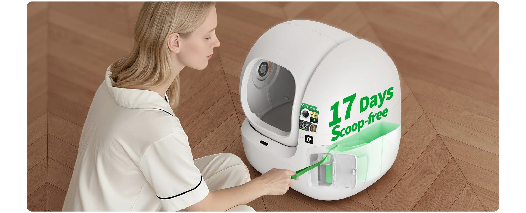 With its 8L waste bin and contactless drawstring waste packing, PUROBOT MAX PRO 2 can provide up to 17 days without scooping for a single cat. For multi-cat households, the duration may vary based on the number of cats and usage frequency.
