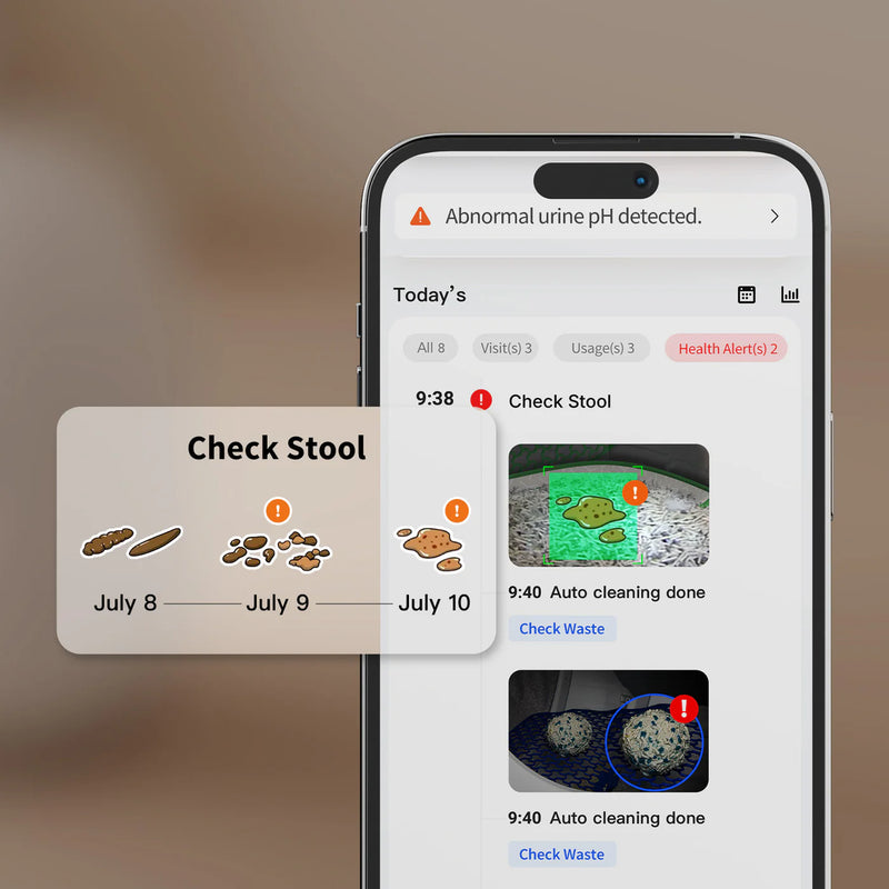 Never worry about mix-ups again. With facial recognition and weight sensing, each cat gets a dedicated record, even cats with similar weights, making multi-cat care effortless.